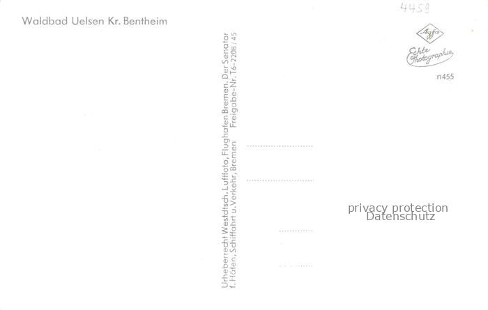 74106222 Uelsen Bentheim Niedersachsen Waldbad Freibad Gaststaette postalisch nicht gelaufen Fliegeraufnahme Erhaltung siehe scans [FriedD77] KatCode: 11110003456023