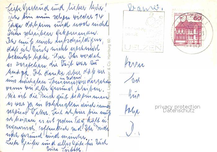 72616732 alte Postkarte Uelzen Lueneburger Heide Bahnhofstrasse Am Kreishaus Herzogenplatz Rathaus postalisch gelaufen Erhaltung siehe scans [WerneD78] KatCode: 11110003360025