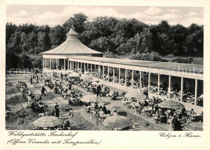 72984038 Uelzen Lueneburger Heide Waldgaststaette Fischerhof Veranda mit Tanzpavillon postalisch nicht gelaufen Erhaltung siehe scans [WerneD78] KatCode: 11110003360025