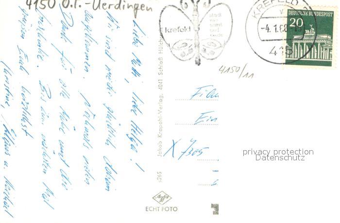 73693349 alte Postkarte Uerdingen Krefeld St Peter Rheinbruecke St Heinrich Alter Turm Hafenpartie Stadtgarten postalisch gelaufen Erhaltung siehe scans [WerneD78] KatCode: 11110005114000