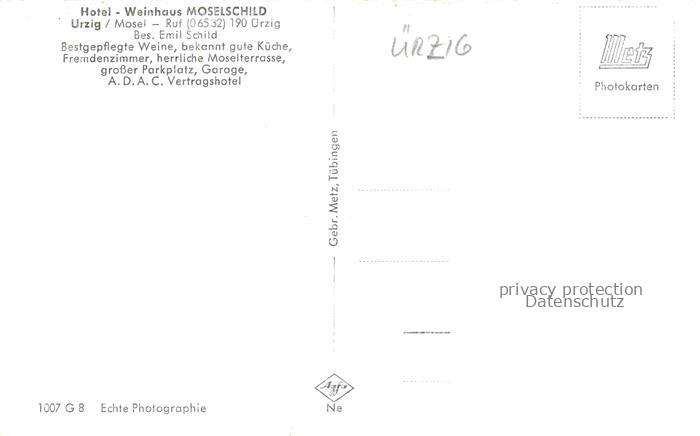74040462 uerzig Hotel Weinhaus Moselschild Gastraum Terrasse postalisch nicht gelaufen Erhaltung siehe scans [FriedD77] KatCode: 11110007231125