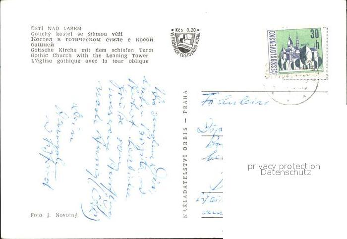 old postcard uesti nad Labem Gotische Kirche mit dem schiefen Turm postalisch gelaufen Erhaltung siehe scans