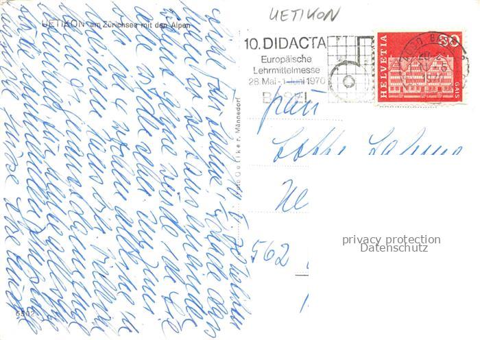 34143626 alte Postkarte Uetikon See Meilen ZH Panorama Zuerichsee Alpen postalisch gelaufen Erhaltung siehe scans [FriedD77] KatCode: 11470260895378
