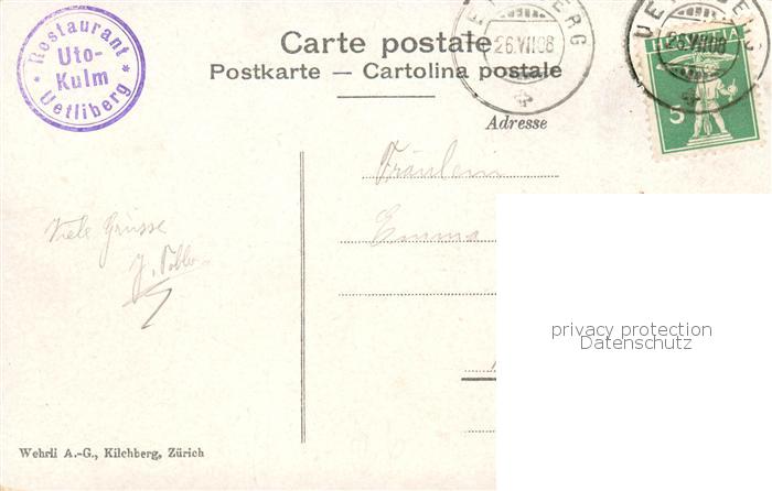 13790979 alte Postkarte Uetliberg ZH Restaurant Uto-Kulm – Blick a. d. Zuerichsee postalisch gelaufen Erhaltung siehe scans [LiesaD40] KatCode: 11470520525072