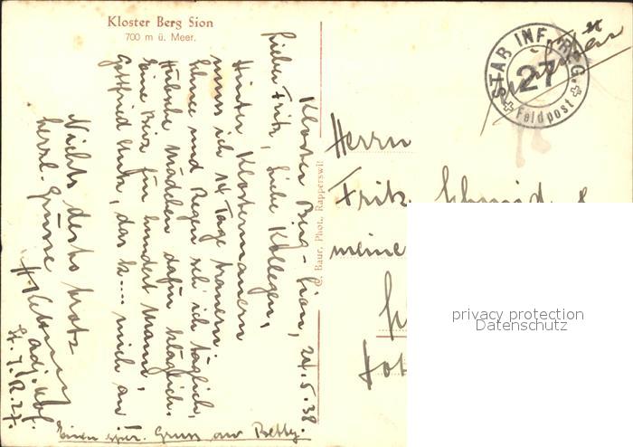 11630907 alte Postkarte Uetliburg SG Kloster Berg Sion postalisch gelaufen Feldpost Erhaltung siehe scans KatCode: 11470190570702