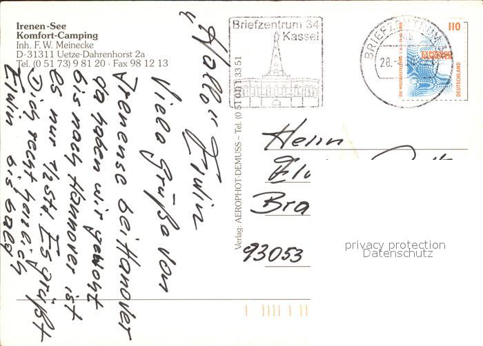 72610780 alte Postkarte Uetze Irenen-See Komfort-Camping Fliegeraufnahme postalisch gelaufen Erhaltung siehe scans [AndreD76] KatCode: 11110003241018