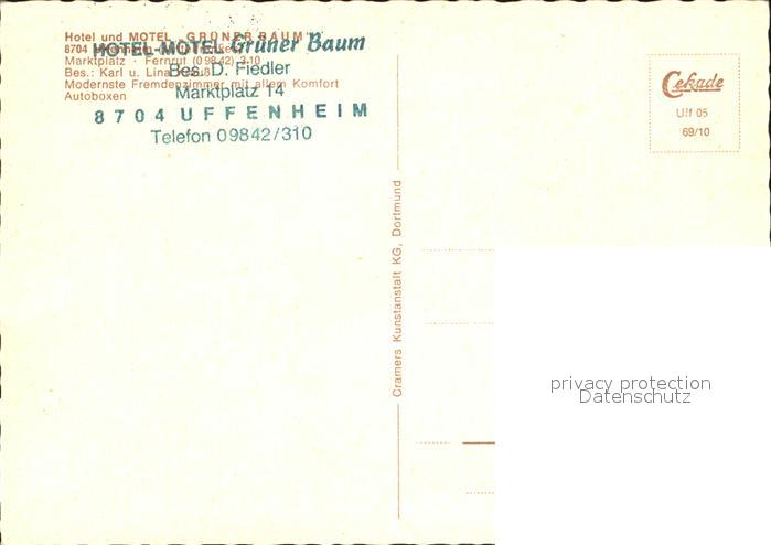 72230398 Uffenheim Kirchen Stadttor Hotel und Motel Gruener Baum Marktplatz postalisch nicht gelaufen Erhaltung siehe scans KatCode: 11110009575168