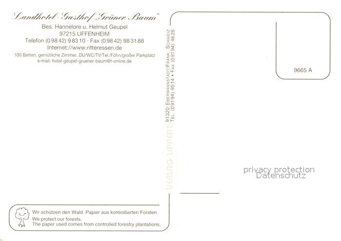73090180 Uffenheim Landhotel-Gasthof Gruener Baum postalisch nicht gelaufen Erhaltung siehe scans [PaolaD17] KatCode: 11110009575168