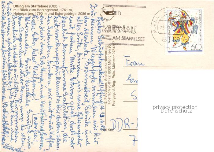 73647720 alte Postkarte Uffing Staffelsee Fliegeraufnahme mit Herzogstand Heimgarten und Estergebirge postalisch gelaufen Erhaltung siehe scans [WerneD78] KatCode: 11110009180134