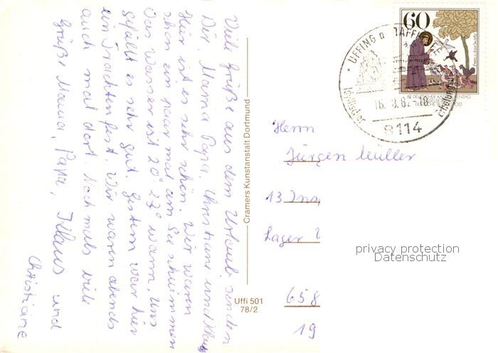 73840053 alte Postkarte Uffing Staffelsee mit Wetterstein Staffelseepartie Strandbad Fliegeraufnahme postalisch gelaufen Erhaltung siehe scans [FriedD77] KatCode: 11110009180134