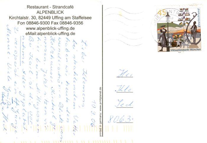 73878920 alte Postkarte Uffing Staffelsee Restaurant Strandcafe Alpenblick postalisch gelaufen Erhaltung siehe scans [WerneD78] KatCode: 11110009180134