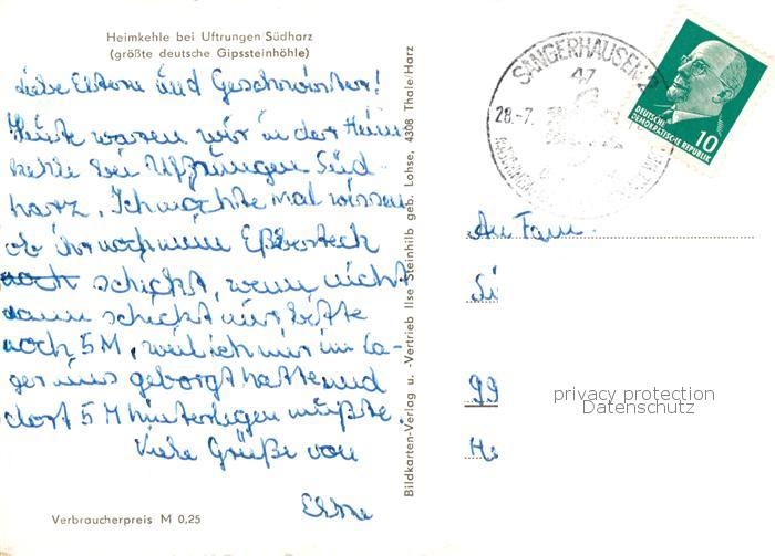 73828762 alte Postkarte Uftrungen Gaststaette Heimkehle Gipssteinhoehle Details postalisch gelaufen Erhaltung siehe scans [WerneD78] KatCode: 11110015087425