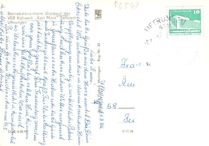 73883081 alte Postkarte Uftrungen Suedharz Betriebsferienheim Glueckauf des VEB Kaliwerk Karl Marx Sollstedt postalisch gelaufen Erhaltung siehe scans [FriedD77] KatCode: 11110015087425