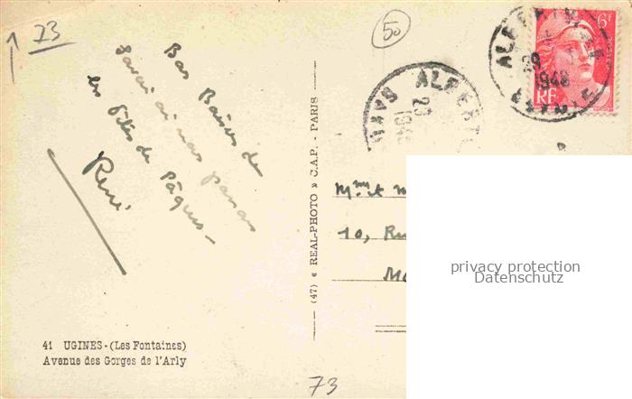 14117102 Ugines Ugine ALBERTVILLE 73 Savoie Avenue des Gorges de l’Arly postalisch gelaufen Erhaltung siehe scans [FriedD77] carte postale Frie Katcode 11170073173303
