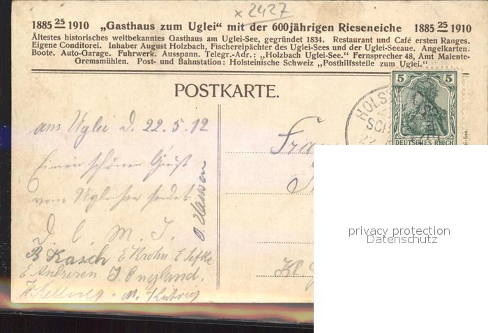 42090953 alte Postkarte Uglei See Gasthaus zum Uglei 600-jaehrige Rieseneiche postalisch gelaufen KatCode: 11110001055041