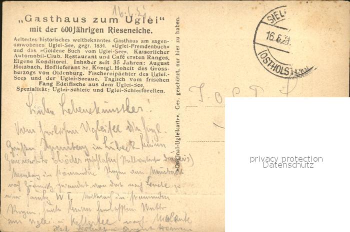 71867706 alte Postkarte Uglei See mit der 600jaehrigen Rieseneiche Sage postalisch gelaufen Erhaltung siehe scans KatCode: 11110001055041