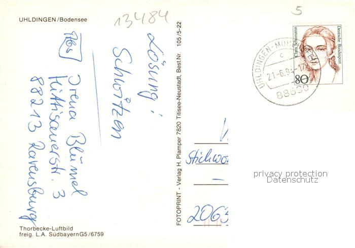 73125892 alte Postkarte Uhldingen-Muehlhofen Fliegeraufnahme postalisch gelaufen Erhaltung siehe scans [NatalD47] KatCode: 11110008435066