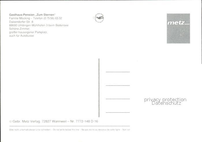 72041944 Uhldingen-Muehlhofen Gasthaus Pension Zum Sternen postalisch nicht gelaufen Erhaltung siehe scans KatCode: 11110008435066