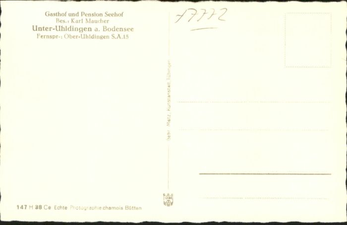 40771814 Uhldingen-Muehlhofen Gasthof Pension Seehof postalisch nicht gelaufen Alte Ansichtskarte Postkarte Katcode 11110008435066