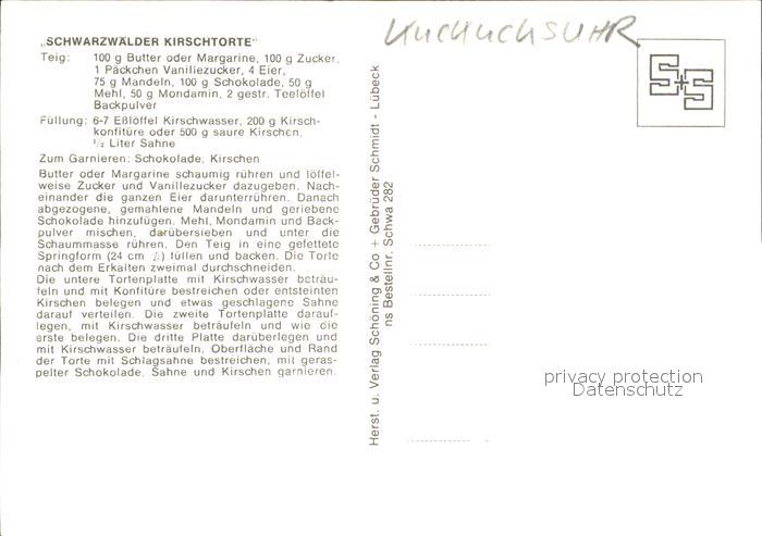 72148296 Uhren Kuckucksuhr Rezept Schwarzwälder Kirschtorte KatCode 22060000007400
