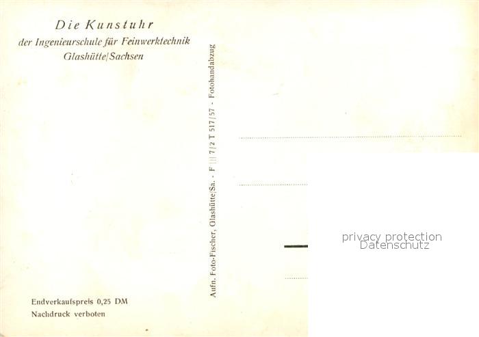 72935983 Uhren Kunstuhr Ingenieurschule Feinwerktechnik Glashütte Sachsen KatCode 22060000007400