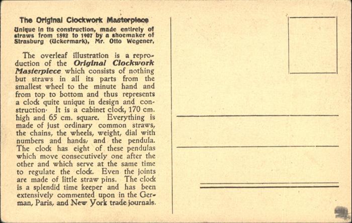 70955888 Uhren Kunstuhr Otto Wegener Uckermark Strasburg KatCode 22060000007400