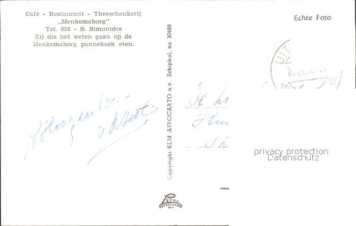 old postcard Uithuizen Menkemaborg Schloss Cafe Restaurant Fliegeraufnahme postalisch gelaufen Erhaltung siehe scans