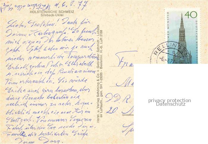 74034642 alte Postkarte Uklei Sielbeck Gaststaette Bootsanleger Naturpark Holsteinische Schweiz postalisch gelaufen Fliegeraufnahme Erhaltung siehe scans [FriedD77] KatCode: 11110001055012