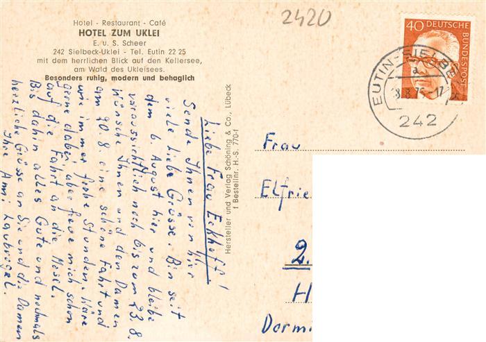73940317 alte Postkarte Uklei Sielbeck Hotel zum Uklei Gastraum postalisch gelaufen Erhaltung siehe scans [FriedD77] KatCode: 11110001055012