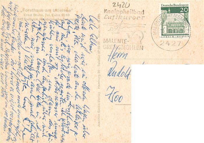 73940314 alte Postkarte Ukleisee Eutin Forsthaus am Ukleisee Gastraeume Seepartie postalisch gelaufen Erhaltung siehe scans [FriedD77] KatCode: 11110001055012
