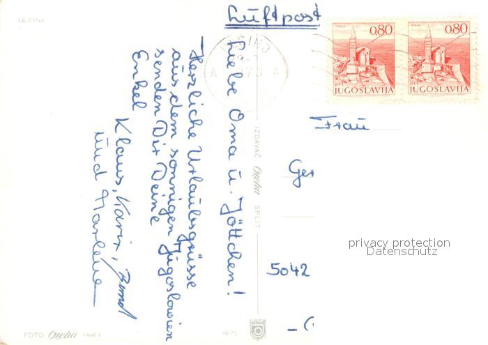 old postcard Ulcinj Fliegeraufnahme postalisch gelaufen Erhaltung siehe scans [FriedD77]