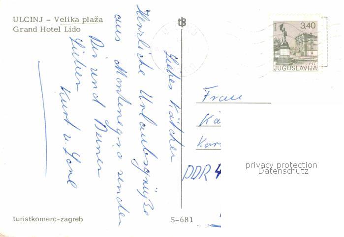 old postcard Ulcinj Fliegeraufnahme Grand Hotel Lido postalisch gelaufen Erhaltung siehe scans [LiesaD40]