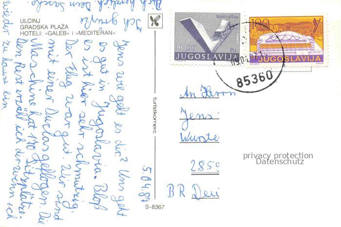 74085717 old postcard Ulcinj Montenegro Gradska Plaza Hoteli Gelab i Mediteran Fliegeraufnahme postalisch gelaufen Erhaltung siehe scans [WerneD78] KatCode: 11360