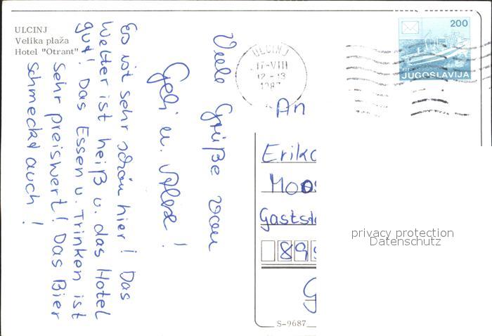 old postcard Ulcinj Vilika plaza Hotel Otrant postalisch gelaufen Erhaltung siehe scans
