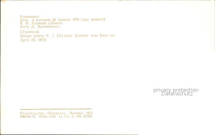Uljanowsk Geburtshaus Wladimir Iljitsch Uljanow Lenin postalisch nicht gelaufen Erhaltung siehe scans