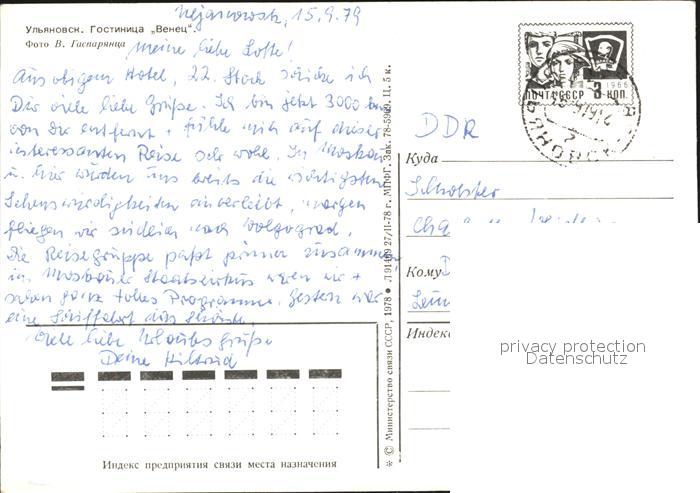 old postcard Uljanowsk Hotel Crown postalisch gelaufen Erhaltung siehe scans