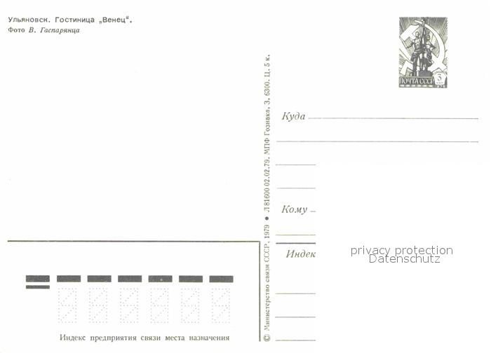 Uljanowsk Hotel Wenez postalisch nicht gelaufen Ganzsache (eingedruckte Briefmarke) Erhaltung siehe scans [NatalD47]
