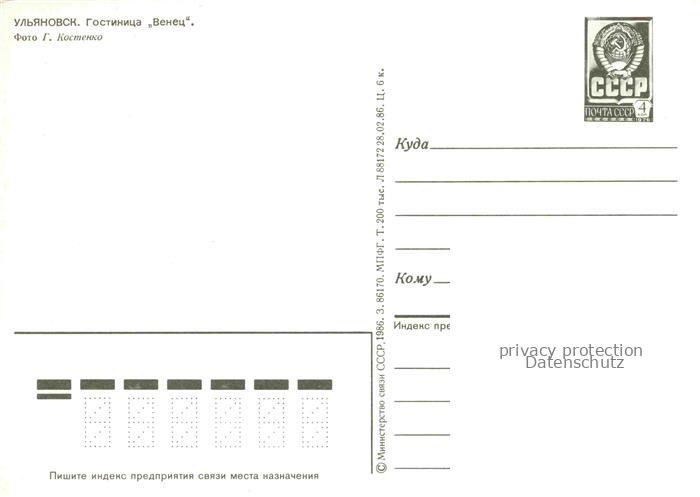 74042299 Uljanowsk Hotel Wenez postalisch nicht gelaufen Erhaltung siehe scans [IrynaD87] KatCode: 11440
