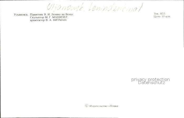 Uljanowsk Lenin Denkmal postalisch nicht gelaufen Keine Postkarte (siehe scan) Erhaltung siehe scans