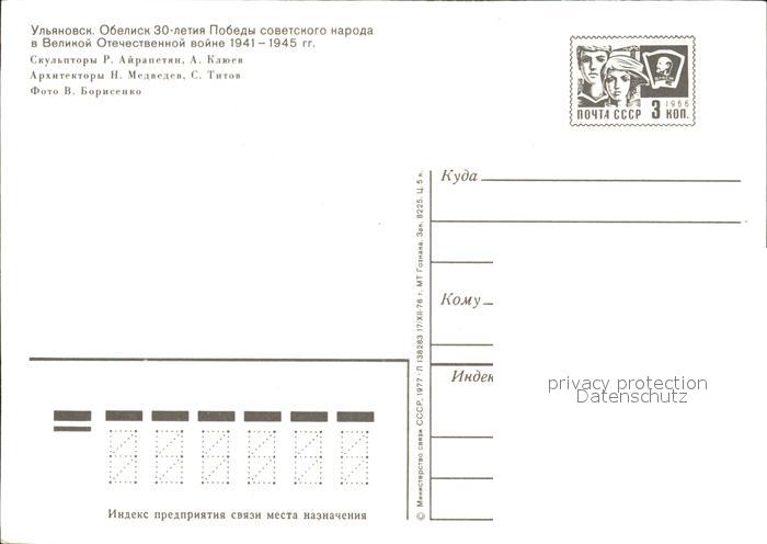 Uljanowsk Obelisk postalisch nicht gelaufen Ganzsache (eingedruckte Briefmarke) Erhaltung siehe scans [NatalD47 kv013box]