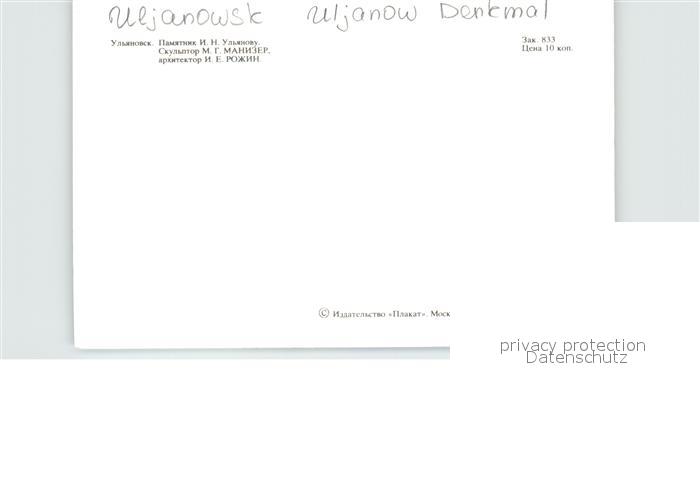 Uljanowsk Uljanow Denkmal Bueste postalisch nicht gelaufen Erhaltung siehe scans [FriedD77]