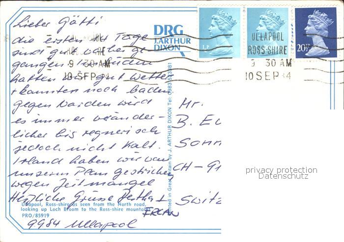 old postcard Ullapool Ross Shire Loch Bloom postalisch gelaufen Erhaltung siehe scans