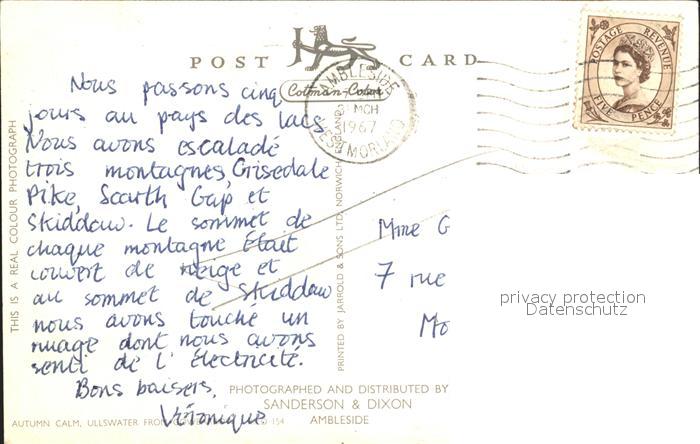 old postcard Ullswater See postalisch gelaufen Erhaltung siehe scans