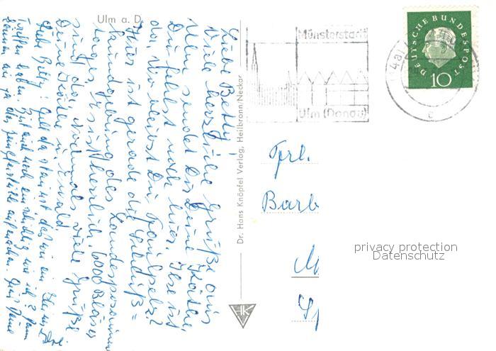 73174730 alte Postkarte Ulm Donau postalisch gelaufen Erhaltung siehe scans [NatalD47] KatCode: 11110008421000