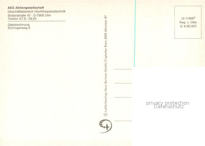 73724787 Ulm Donau AEG AG Systemtechnik Gmbh Hochhaeuser Fliegeraufnahme postalisch nicht gelaufen Erhaltung siehe scans [WerneD78] KatCode: 11110008421000