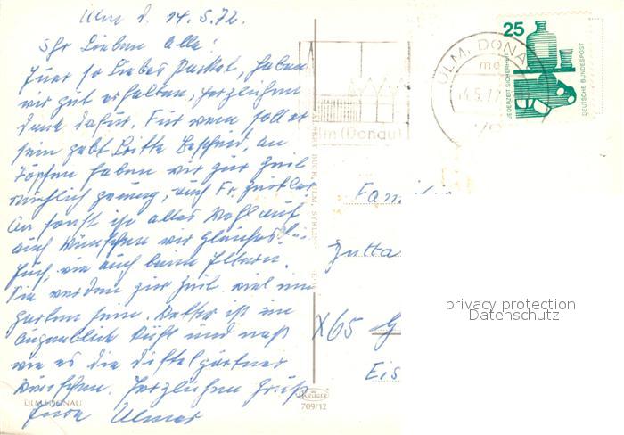 73575324 alte Postkarte Ulm Donau Blick ueber die Donau zur Altstadt mit Muenster Nachtaufnahme postalisch gelaufen Erhaltung siehe scans [FriedD77] KatCode: 11110008421000