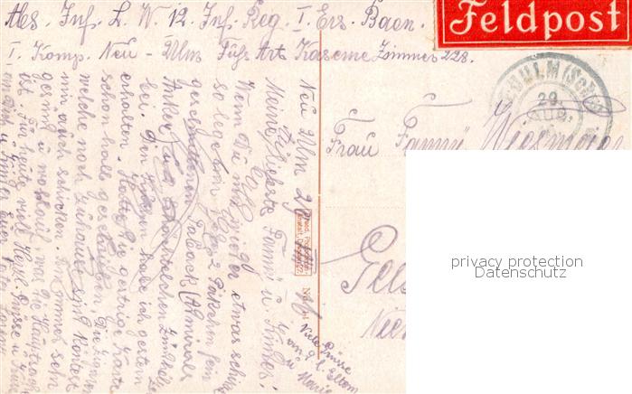 73809887 Ulm Donau Blick zum Muenster Garnisonkirche Donaubruecke postalisch nicht gelaufen Feldpost – Stempel Erhaltung siehe scans [FriedD77] Feldpost – Stempel Frie Katcode 11110008421000