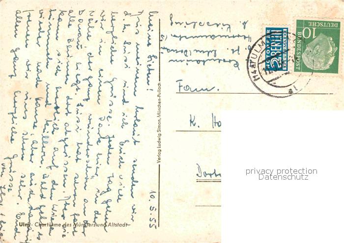 72815449 alte Postkarte Ulm Donau Chortuerme des Muensters und Altstadt Fliegeraufnahme postalisch gelaufen Erhaltung siehe scans [FriedD77] KatCode: 11110008421000