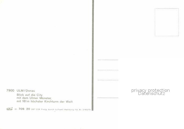 72902607 Ulm Donau City mit Ulmer Muenster Fliegeraufnahme postalisch nicht gelaufen Erhaltung siehe scans [FriedD77] KatCode: 11110008421000