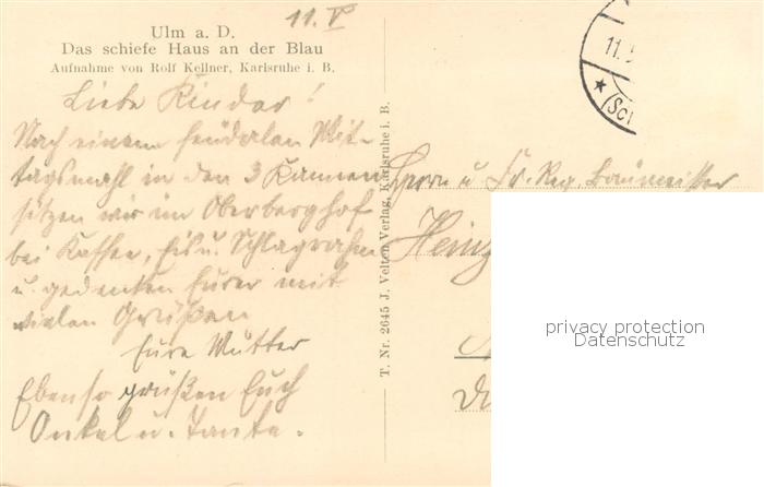 73780073 alte Postkarte Ulm Donau Das schiefe Haus an der Blau postalisch gelaufen Erhaltung siehe scans [WerneD78] KatCode: 11110008421000